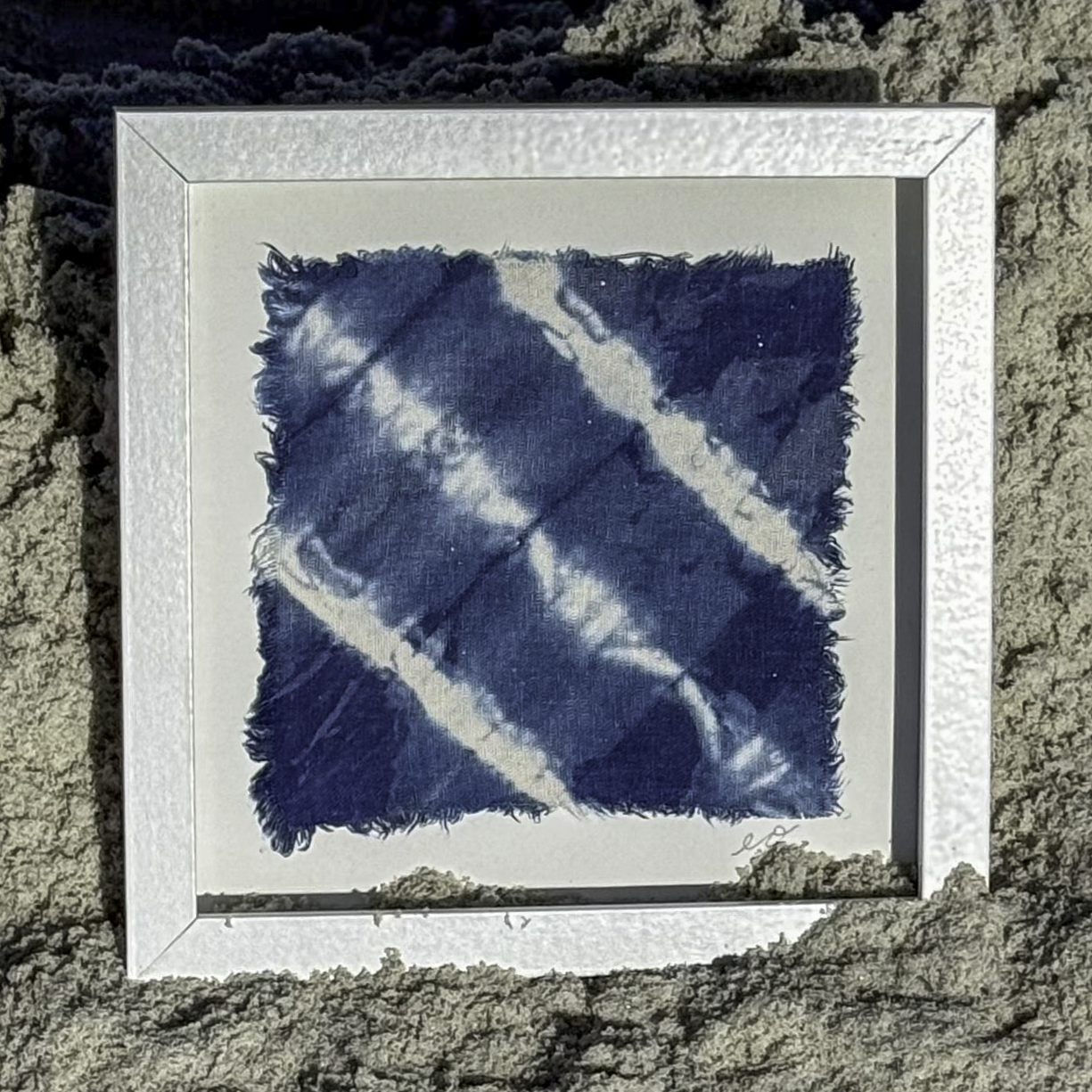 Linen hand-dyed in natural indigo using traditional Japanese shibori resist methods.